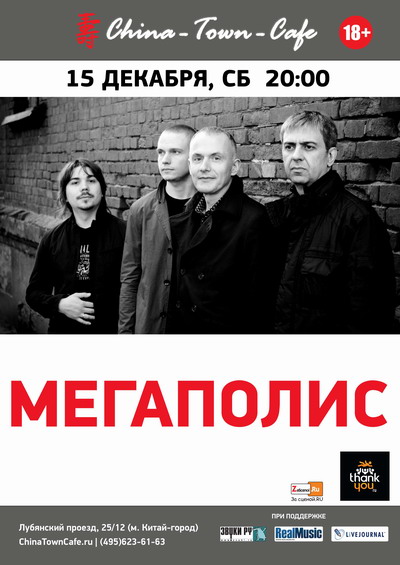 Концерт группы «Мегаполис» в клубе «China Town Cafe». Билеты от 700 рублей.