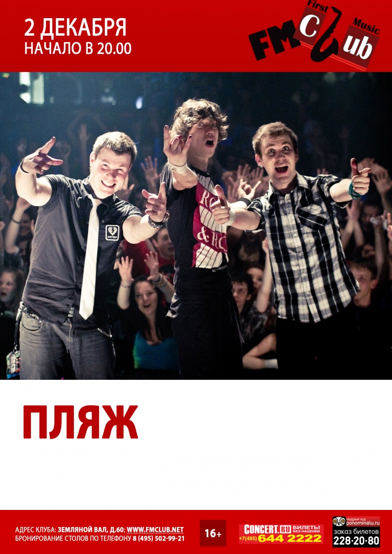 Концерт группы «Пляж» в клубе «FM Club». Билеты от 300 рублей.