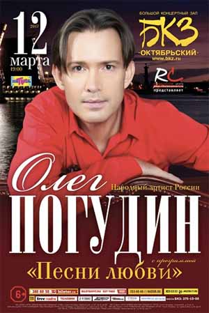 12 марта 2017 в БКЗ Октябрьский выступит российский камерный певец Олег Погудин с программой «Песни любви».