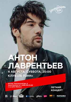 4 августа 2018 в клубе 16 Тонн пройдет летний концерт Антона Лаврентьева.
