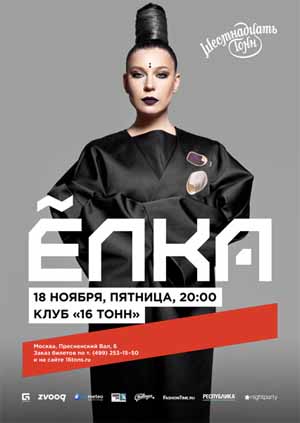 18 ноября 2016 в клубе 16 Тонн выступит певица Ёлка.