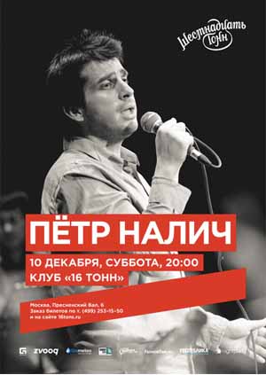 10 декабря 2016 в столичном клубе 16 Тонн выступит Петр Налич с премьерой новой программы.